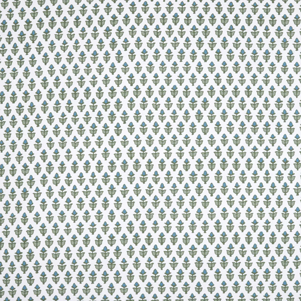 Bring the garden into the bedroom with this blockprint bouquet in a mix of greens and blues.